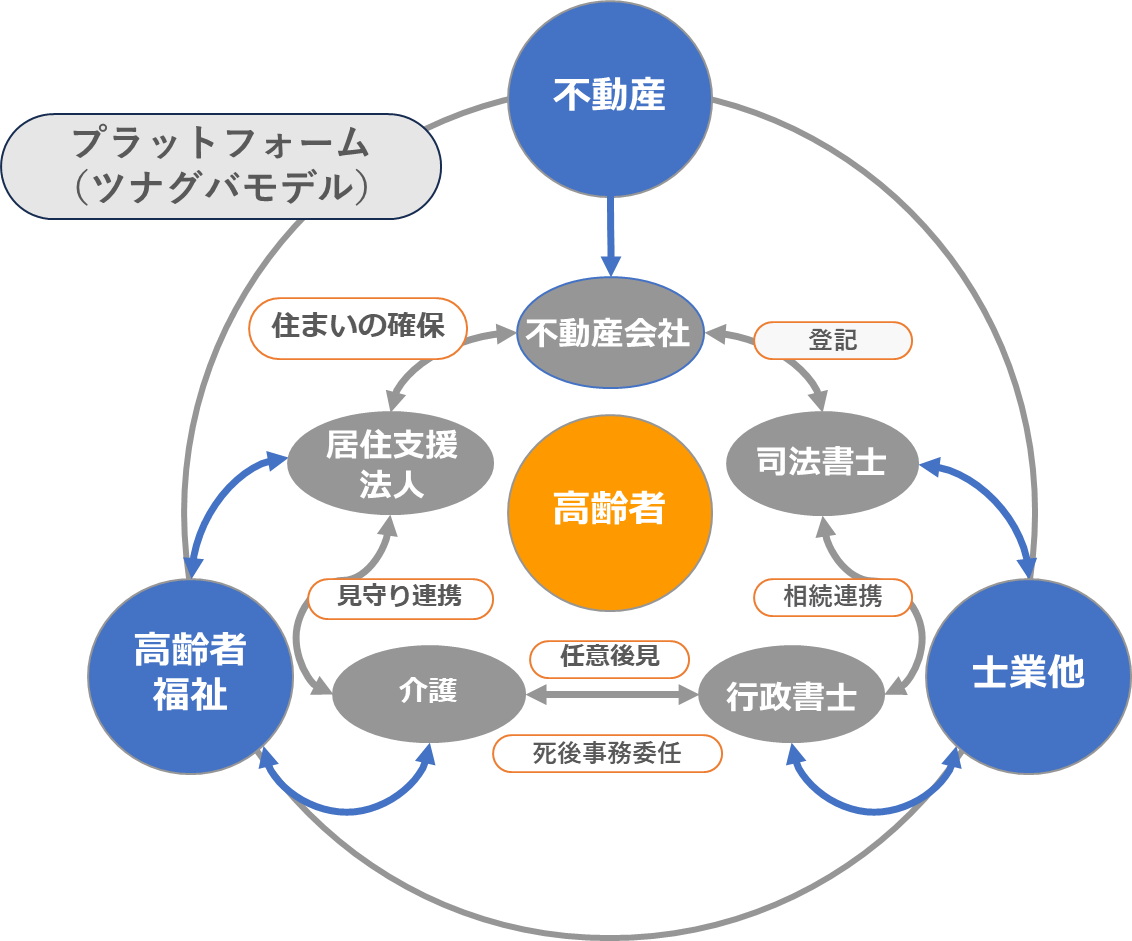 士業との連携においては、全国23か所に終活相談センターをもつ(一社)つむぐと連携を行うことで、高齢期に起きる困りことの全てに対して、ワンストップで解決することができます。